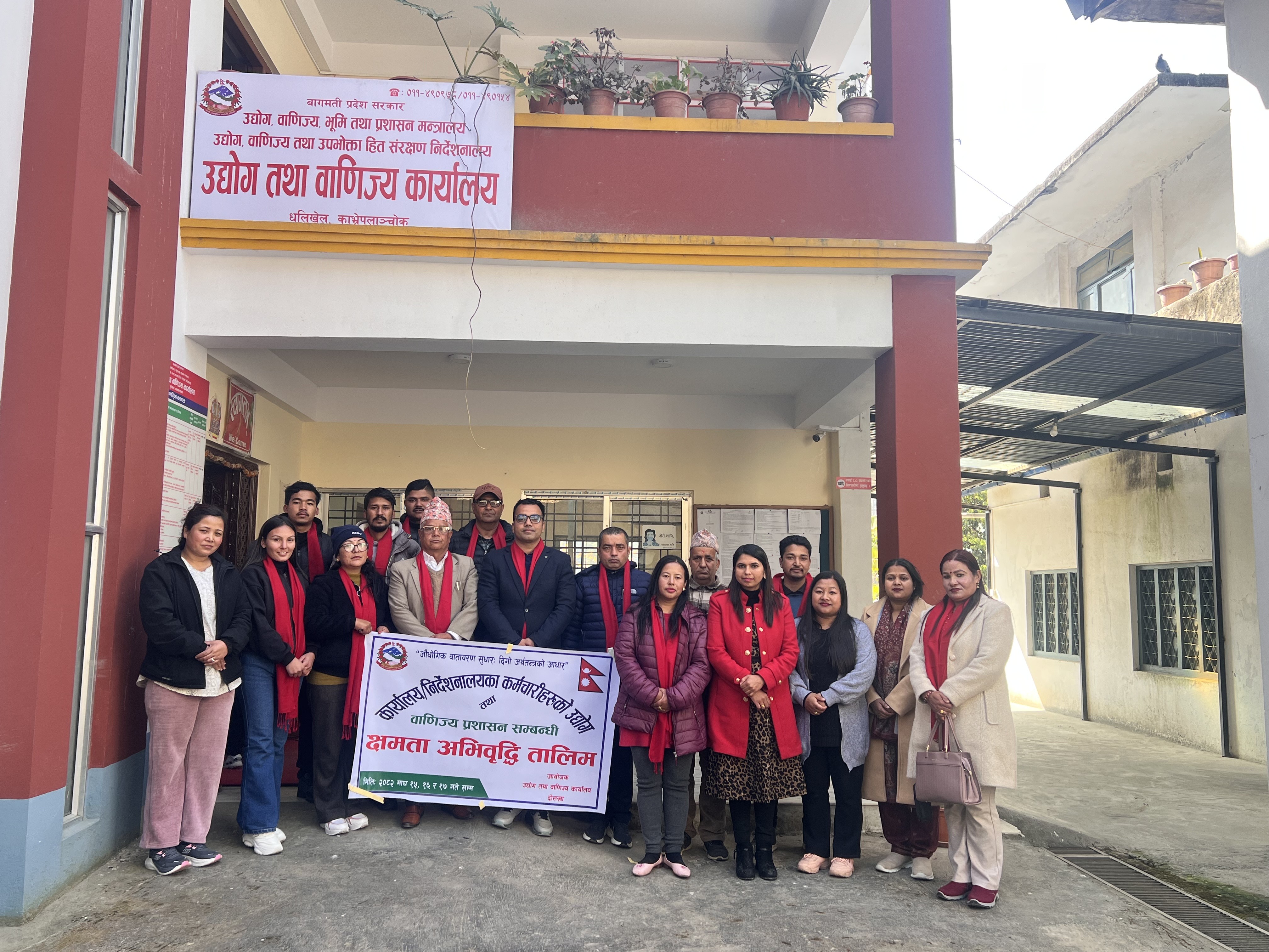 मिति २०८२।१०।१६ गते उद्योग तथा वाणिज्य कार्यालय काभ्रेपलाञ्चोकमा उद्योग तथा वाणिज्य कार्यालय, दोलखाबाट सिकाई साटासाट कार्यक्रमका लागि आउनु भएका कर्मचारीहरुसँग दुवै कार्यालयको असल अभ्यास आदान प्रदान क्रममा लिइएका तस्बिरहरु।