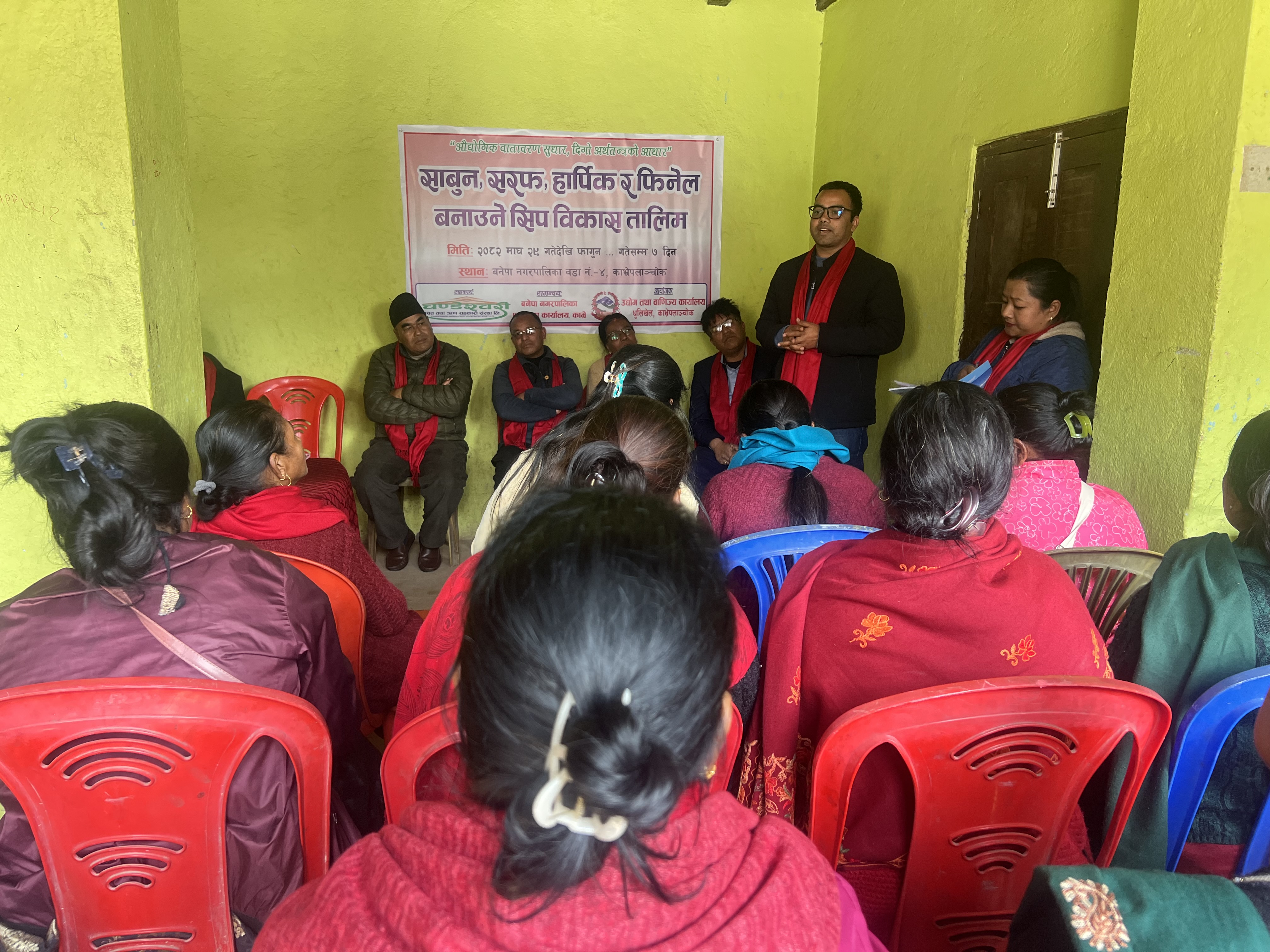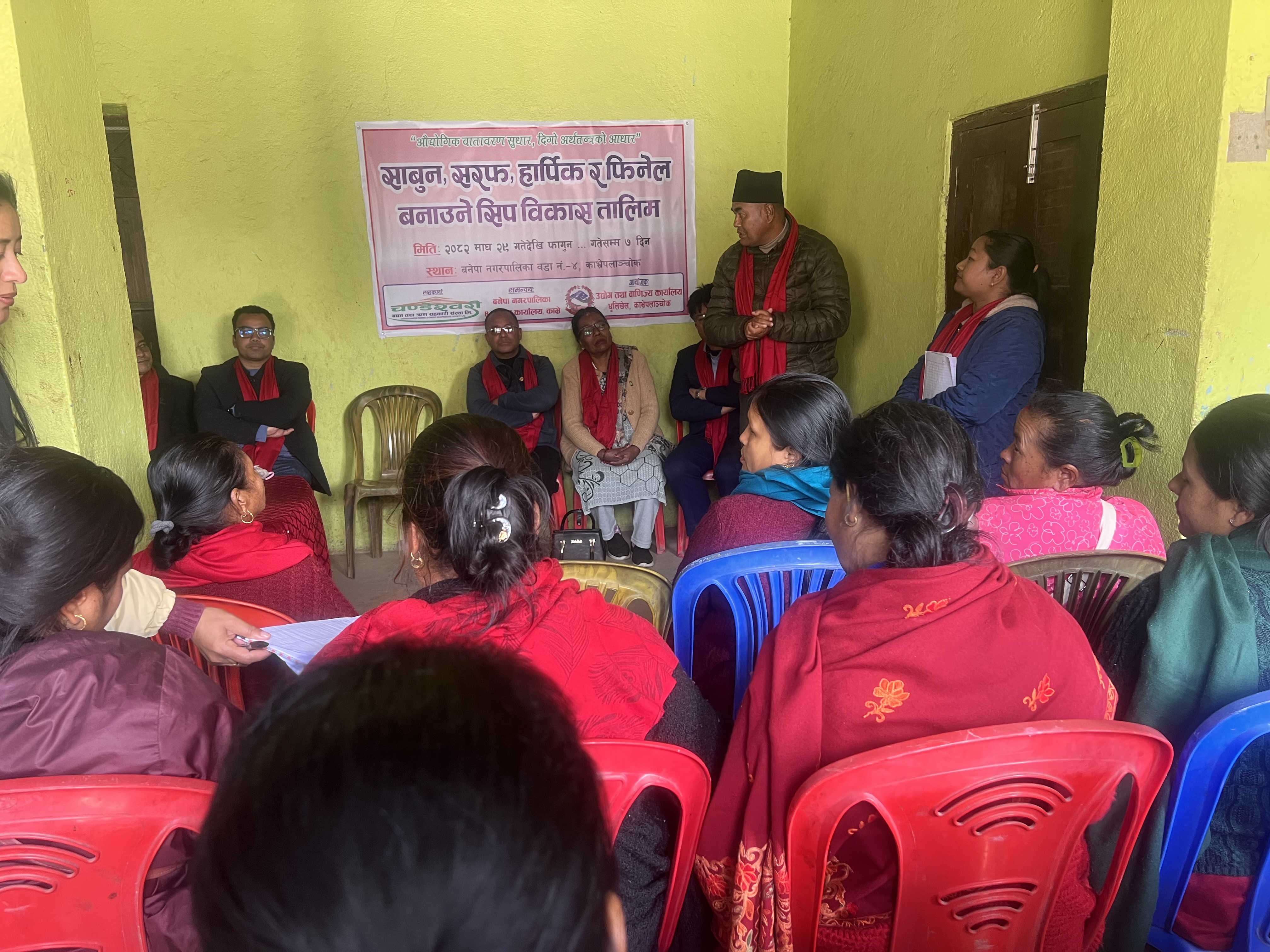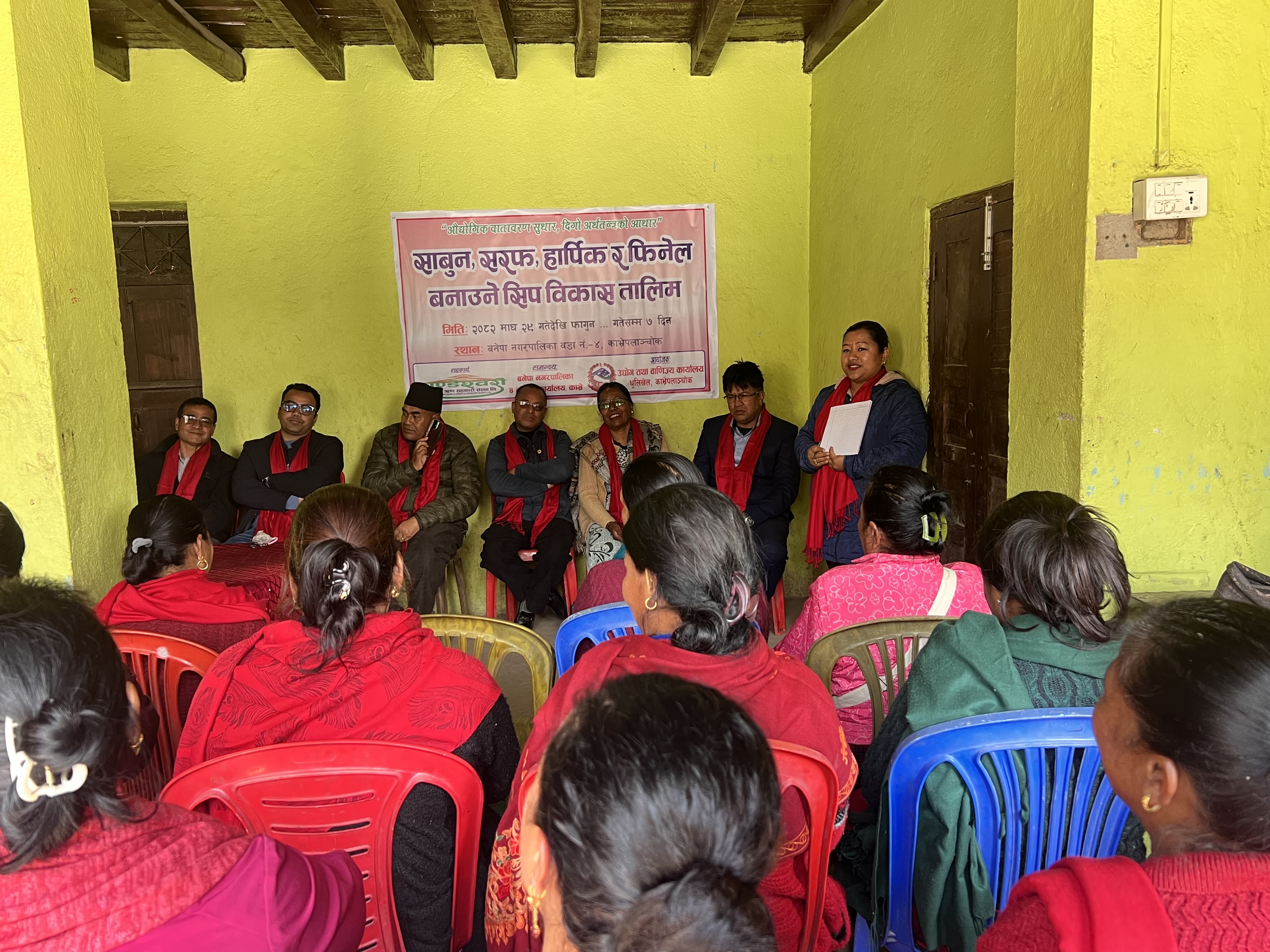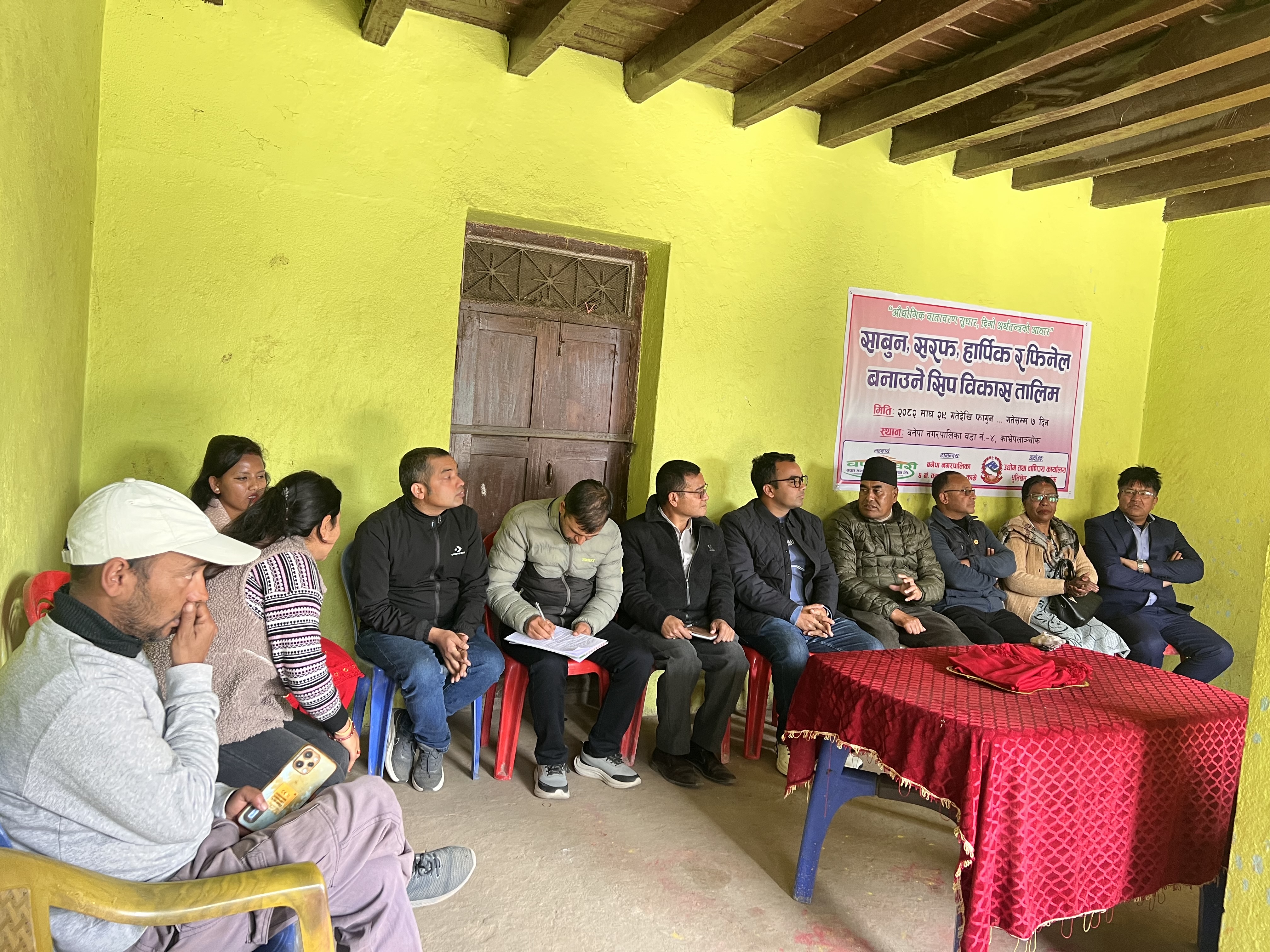 कार्यालयको आ.व.२०८२।०८३ को स्वीकृत बार्षिक कार्यक्रम बमोजिम बनेपा नगरपालिका स्थित नालामा मिति २०८२।१०।२९ गते देखि १ हप्ते साबुन, सरफ, हार्पिक र फिनेल बनाउने सम्बन्धी सिप विकास तालिम शुभारम्भ गरिएको।