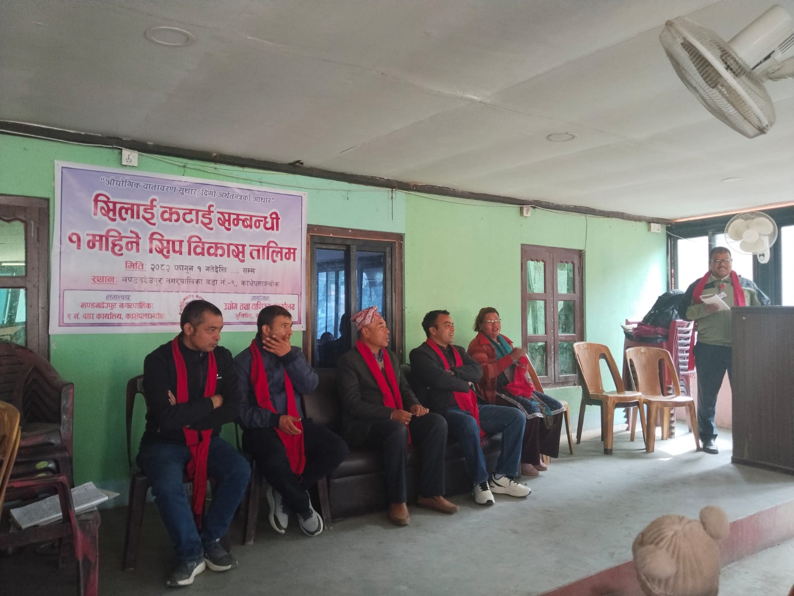 कार्यालयको आ.व.२०८२।०८३ को स्वीकृत बार्षिक कार्यक्रम बमोजिम मण्डनदेउपुर नगरपालिका वडा नं. ९ मा मिति २०८२।११।०१ गते देखि १ महिने सिलाई कटाई सम्बन्धी सिप विकास तालिम शुभारम्भ गरिएको।