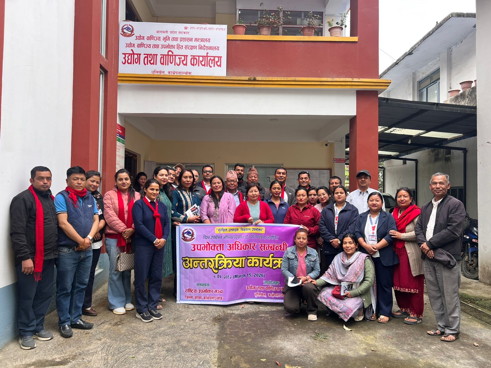 मिति २०८२।१२।०१ गते (March 15, 2026) उपभोक्ता अधिकार दिवस, २०८२ कार्यालयका प्रमुख श्री रबिन घिमिरेको अध्यक्षता एवं सहायक प्रमुख जिल्ला अधिकारीको प्रमुख अतिथ्यतामा उद्योग वाणिज्य संघ, उपभोक्ता मञ्च तथा सञ्चारकर्मीहरुको उपस्थितिमा सचेतना तथा अन्तरक्रिया गरी