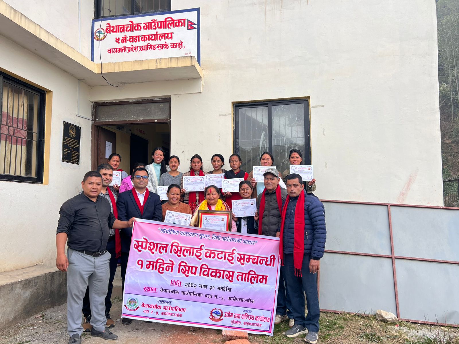 आ.व.२०८२।०८३ को स्वीकृत बार्षिक कार्यक्रम बमोजिम बेथानचोक गाउँपालिका वडा नं. ५ मा १ महिने स्पेशल सिलाई कटाई सम्बन्धी तालिम सम्पन्न भई समापनमा लिइएका तस्बिरहरु