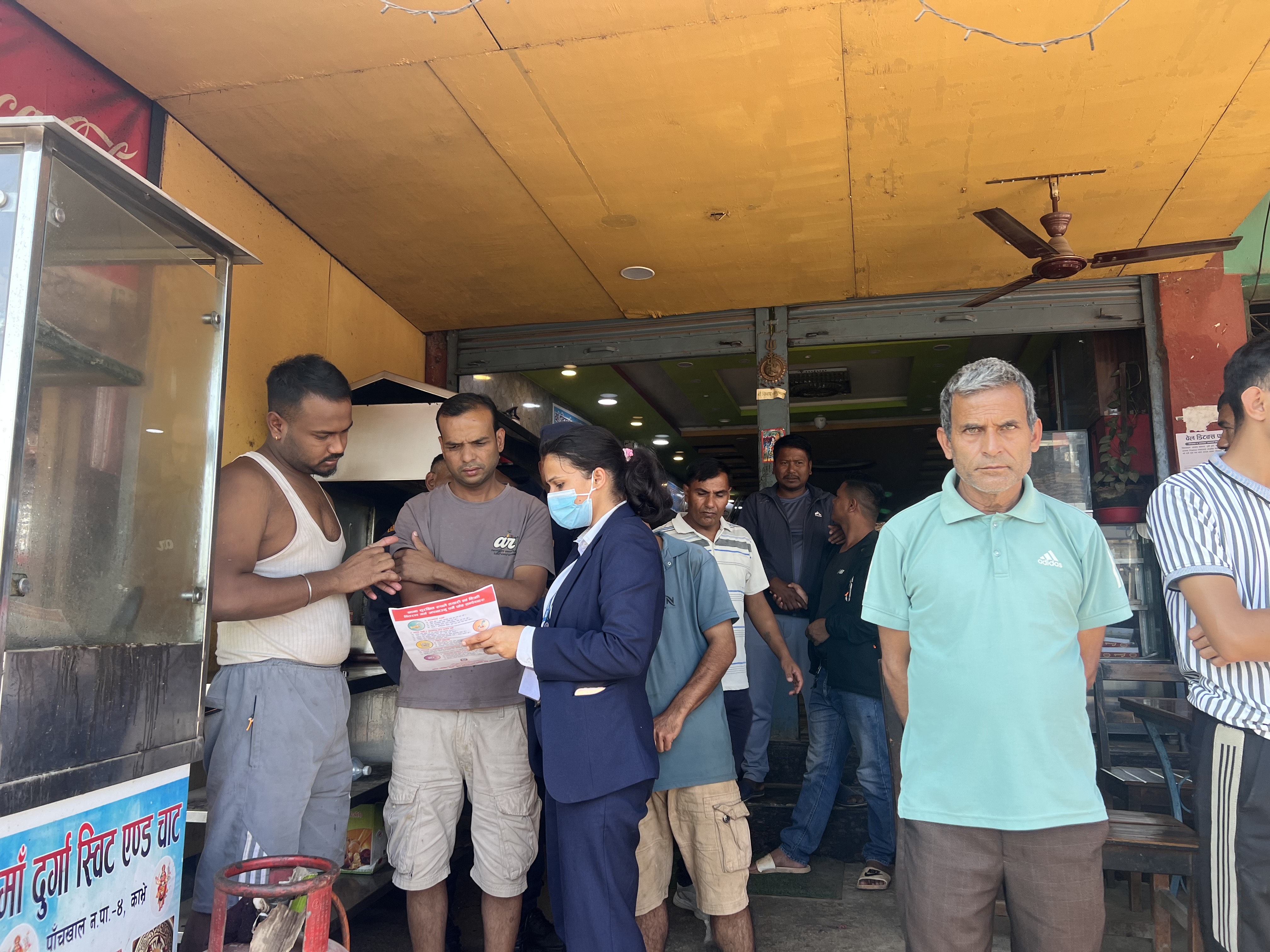मिति २०८२।०६।३० गते पाँचखाल नगरपालिका स्थित पाँचखाल बजारमा सञ्चालनमा रहेका होटेल, रेष्टुरेण्टहरु, होलसेल पसल, मिठाई पसलहरु, मासु पसल, फलफूल पसल, बेकरी पसलको अनुगमन गरी व्यवसायीहरुलाई सचेत गराउनुका साथै अखाद्य सामाग्रीहरु जफत गरी नष्ट गरियो।