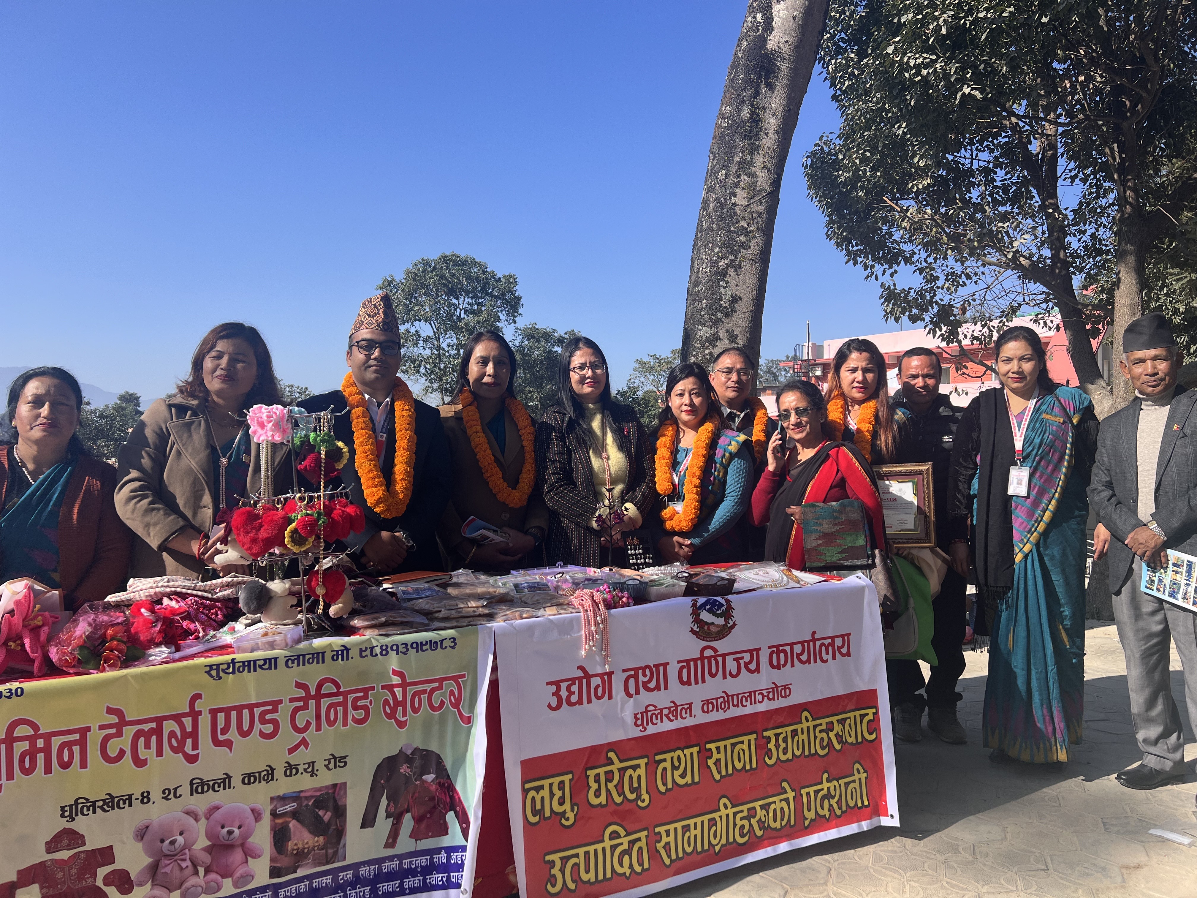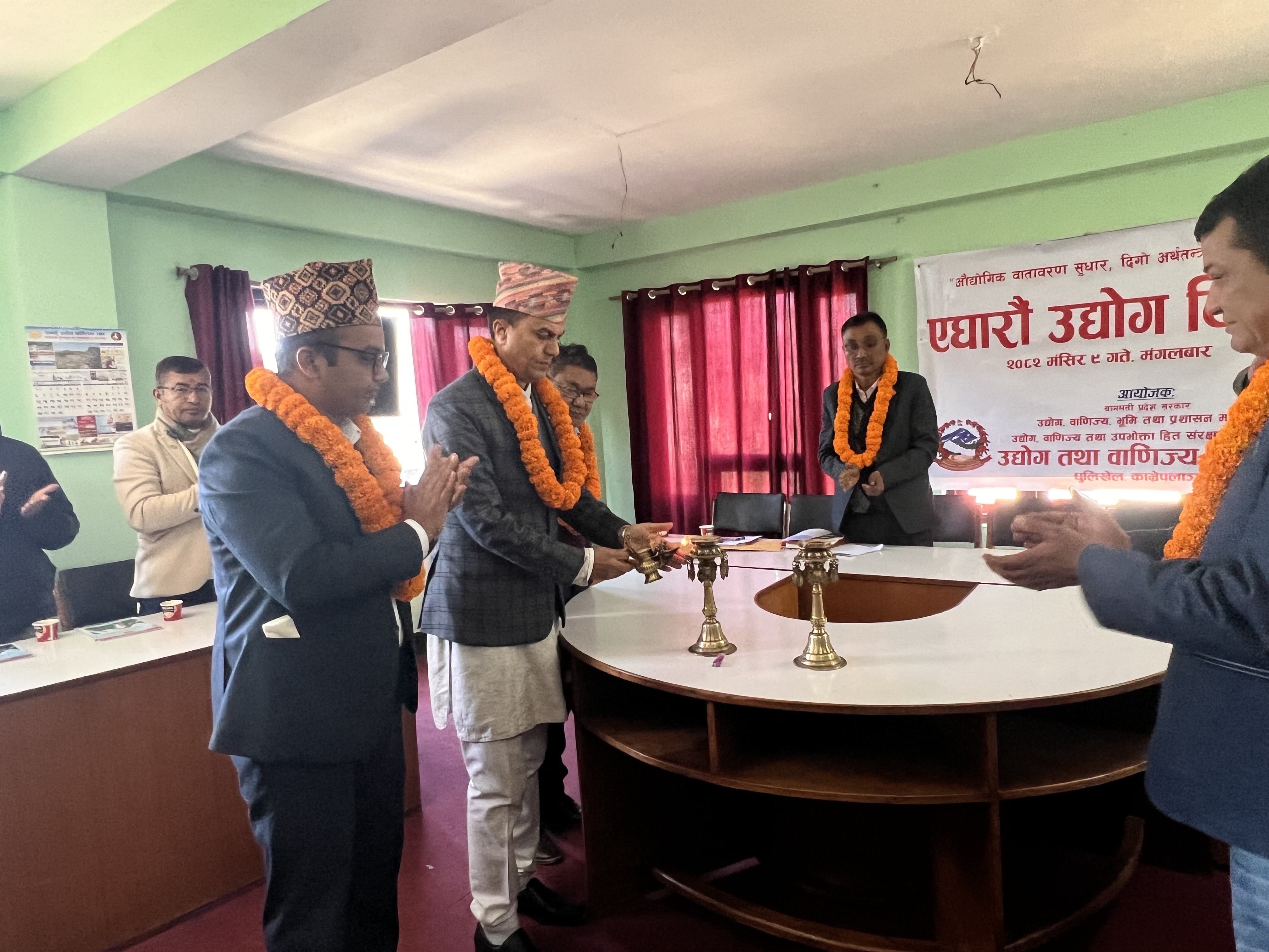 मिति २०८२।०८।०९ गते ११ औं उद्योग दिवसको अवसरमा उद्योग तथा वाणिज्य कार्यालय, काभ्रेपलाञ्चोक, धुलिखेलद्वारा आयोजित कार्यक्रमका तस्बिरहरु।उक्त कार्यक्रममा काभ्रे जिल्लामा रही उद्यमी गर्ने १० जना उत्कृष्ठ उद्यमीहरुलाई सम्मान समेत गरिएको थियो।