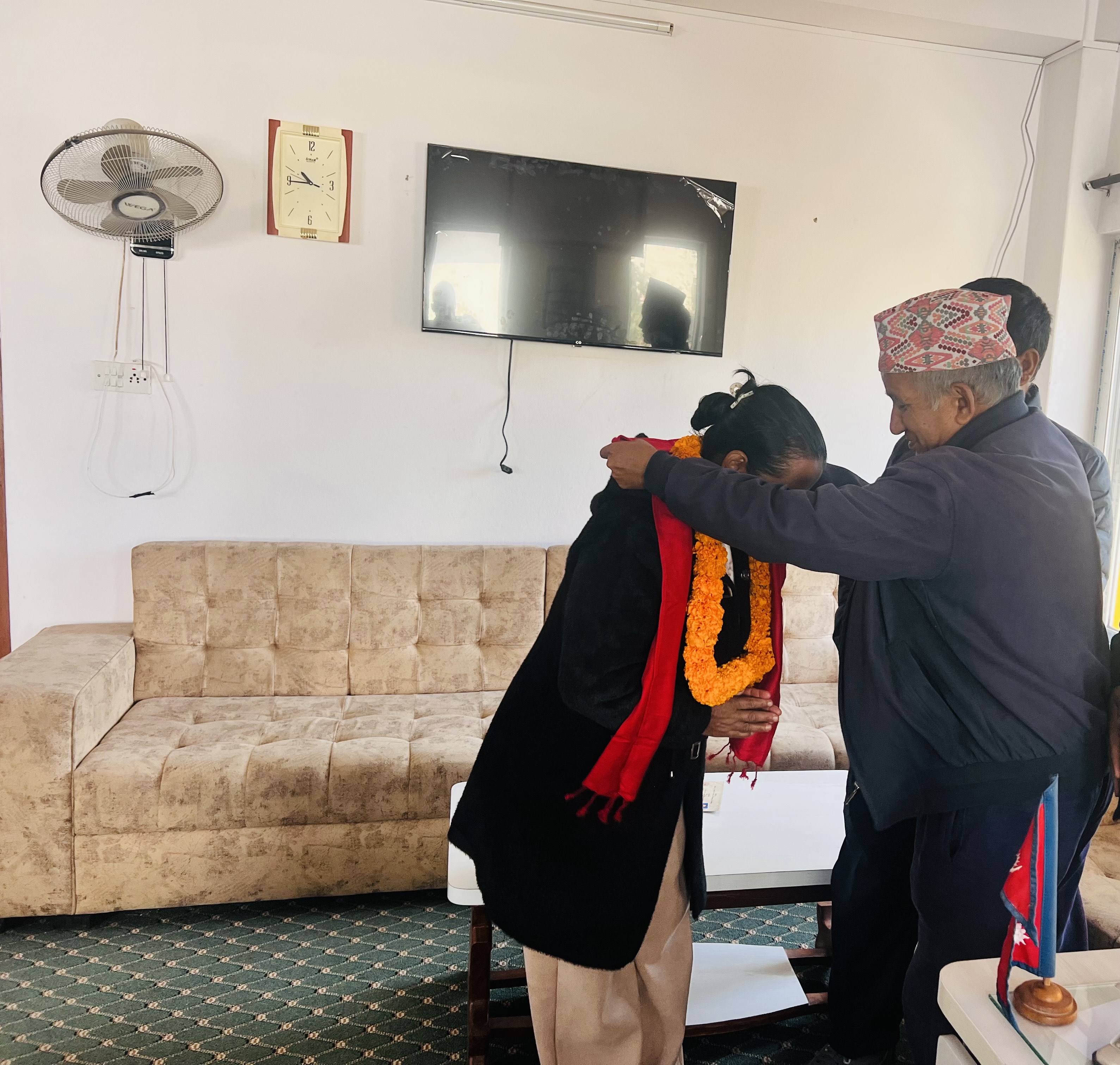 मिति २०८२।०८।०९ गते ११ औं उद्योग दिवसको दिन उद्योग तथा वाणिज्य कार्यालय, काभ्रेपलाञ्चोक, धुलिखेलमा सेवालिन आउनु हुने पहिलो सेवाग्राहीलाई कार्यालय प्रमुखद्वारा सम्मान गर्नुभएको