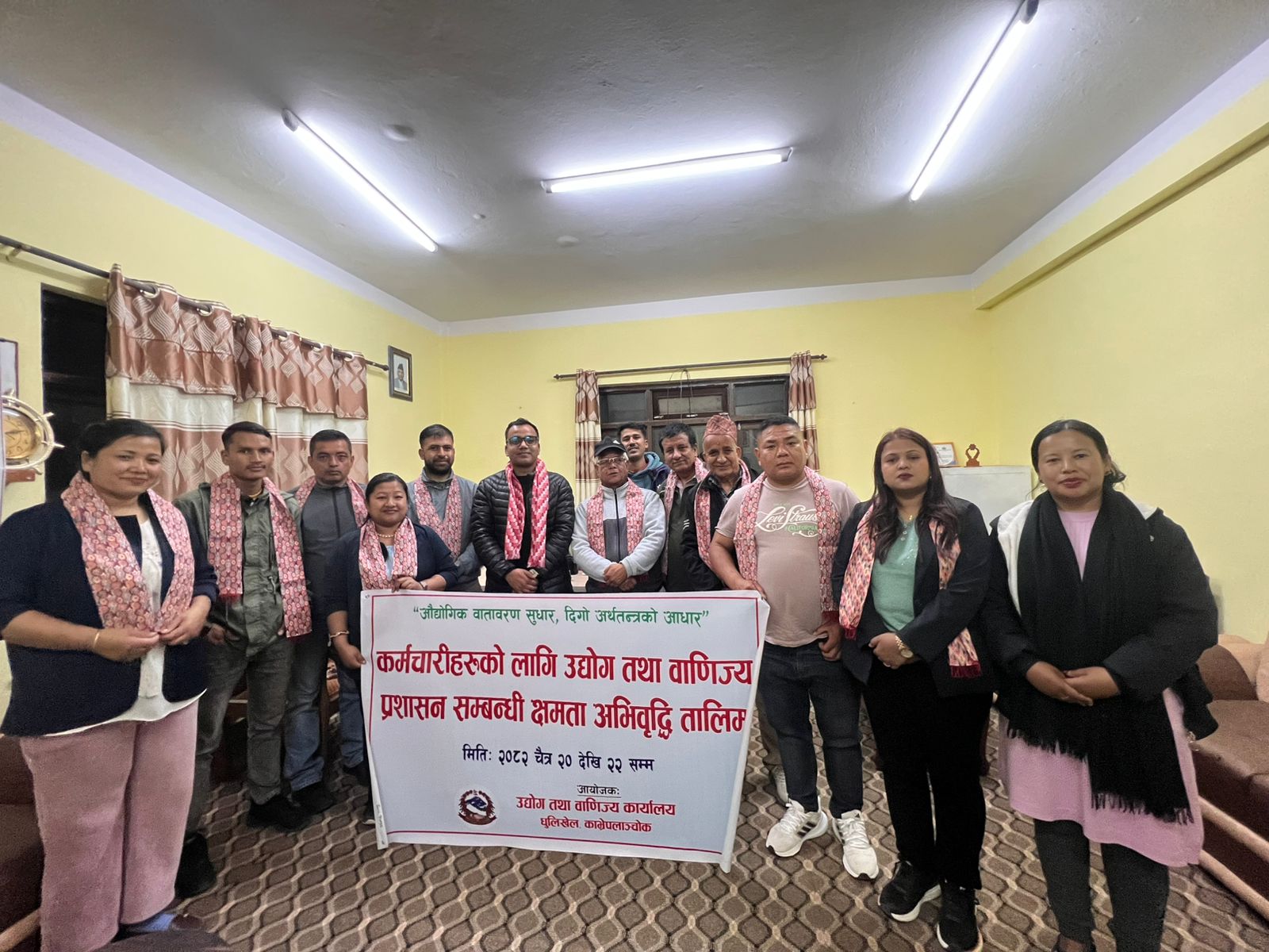 उद्योग तथा वाणिज्य कार्यालयका कर्मचारीहरुद्वारा उद्योग तथा वाणिज्य प्रशासन सँग सम्बन्धित क्षमता अभिवृद्धि एवं सिकाई साटासाट कार्यक्रमका लागि उद्योग तथा वाणिज्य कार्यालय, दोलखाको अवलोकन गरिएको।
